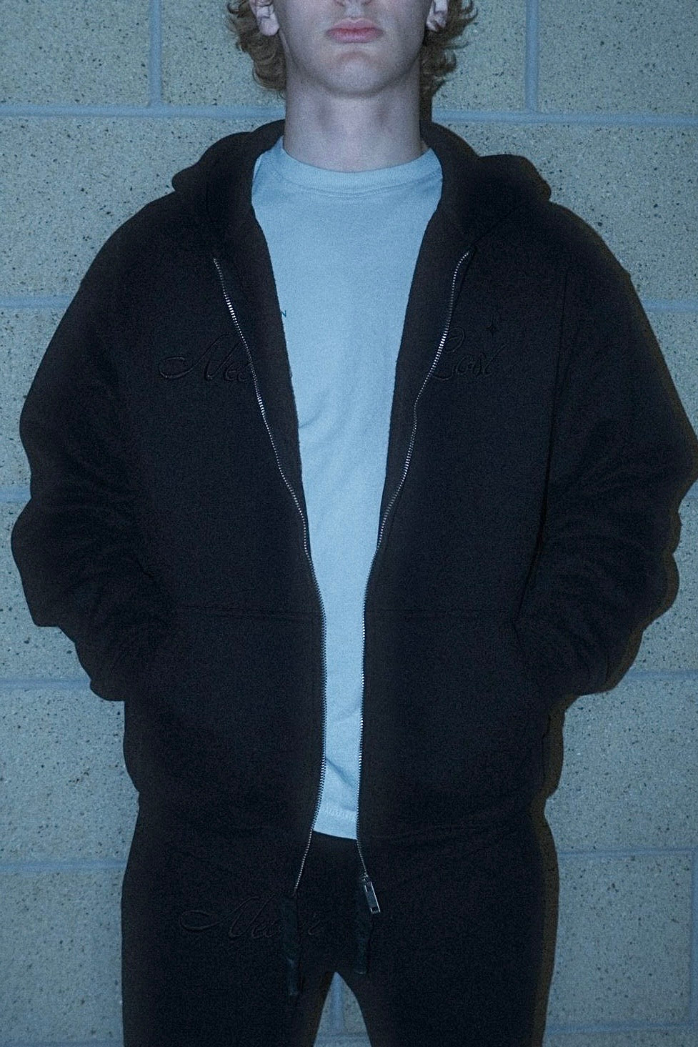 The Phantom V1 Hoodie delivers heavyweight comfort in a blackout design. Built in a thick, 90s-style zip-up silhouette, it features tonal black embroidery for a sleek, understated finish that elevates your outfit.